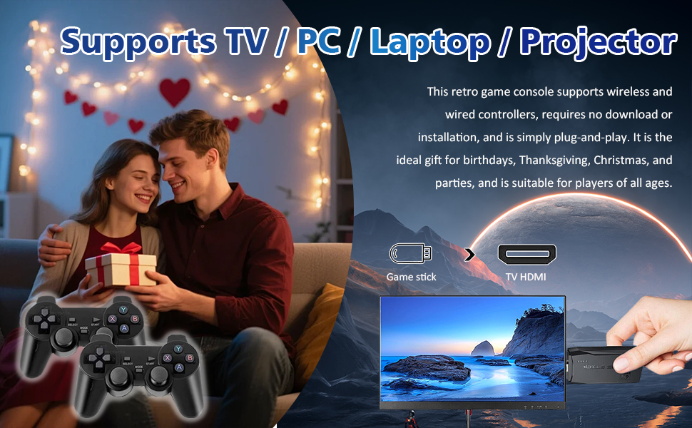 - [Play Anytime] Equipped with two wireless controllers, you can start multiplayer gaming anytime! Stable and responsive controls let you play comfortably from the couch. Enjoy an immersive retro gaming experience.
